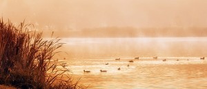 Beautiful lake with wild ducks