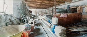 old barn storage room with light beams through window