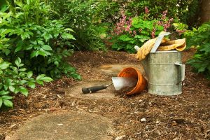Closeup of Tools on the Forest Path Set up and Ready to Garden