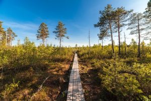 Wooden path on bog land in Estonia