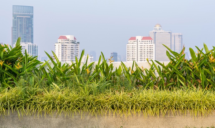 Rooftop garden on the cityscape background