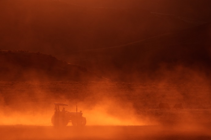 Tractor at sunset