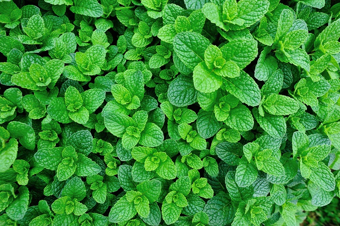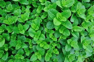 green mint plant grow at vegetable garden