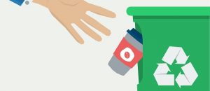 Hand throws a coffee cup in the trash