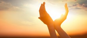 hands holding the sun at dawn